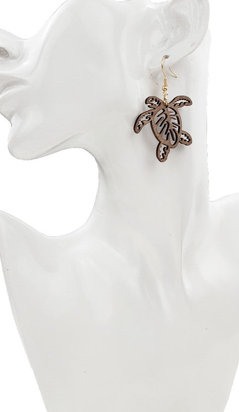Turtle Wood Carved Earrings