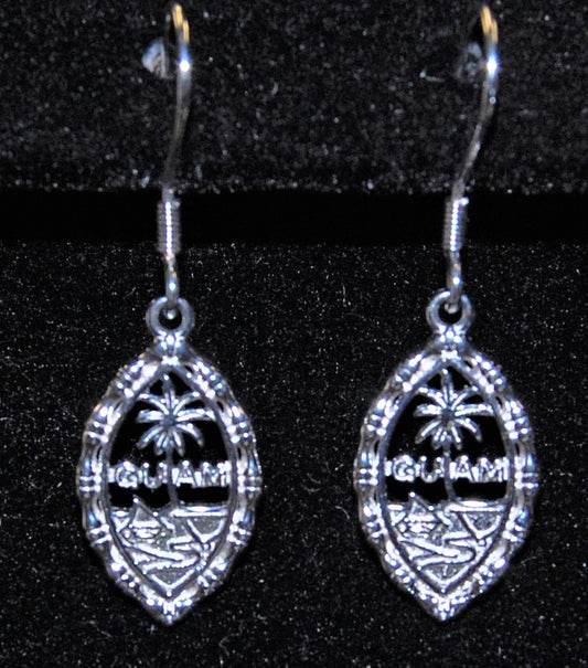 Bamboo Guam Seal Dangling Earring, Silver Rhodium