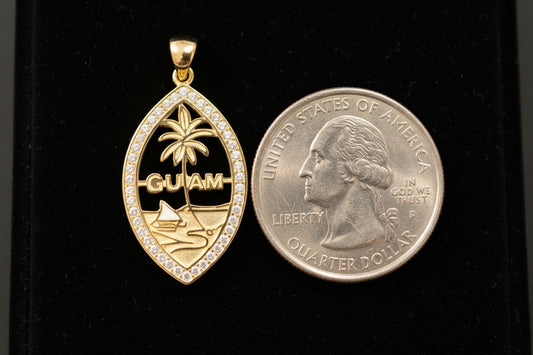 Medium Guam Seal Pendant, Sterling Silver with CZ, Gold Plated